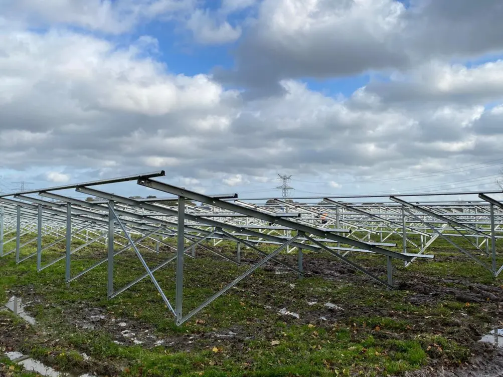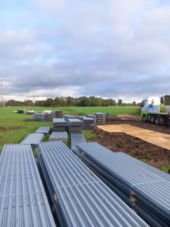 Op 27 oktober is het team gestart met de montage van de palen en de opbouw van de onderconstructie voor Zonnepark Hazenwinkel. Ondanks de regenachtige dagen, liggen we goed op schema. Inmiddels zijn ruim 8.000 palen geplaatst en kunnen we door met de volgende stap!